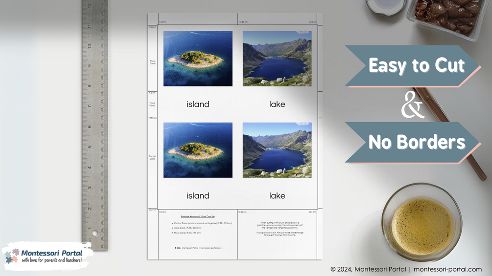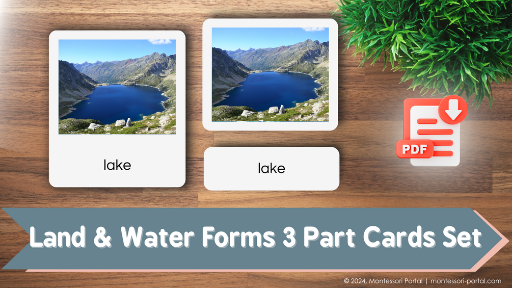 Montessori Land & Water Forms 3 Part Cards Set - Realistic Images